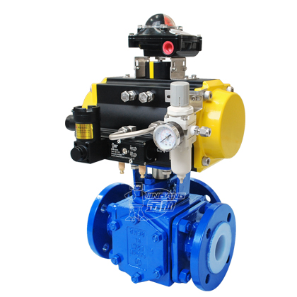 產品名稱:氣動三通襯氟球閥